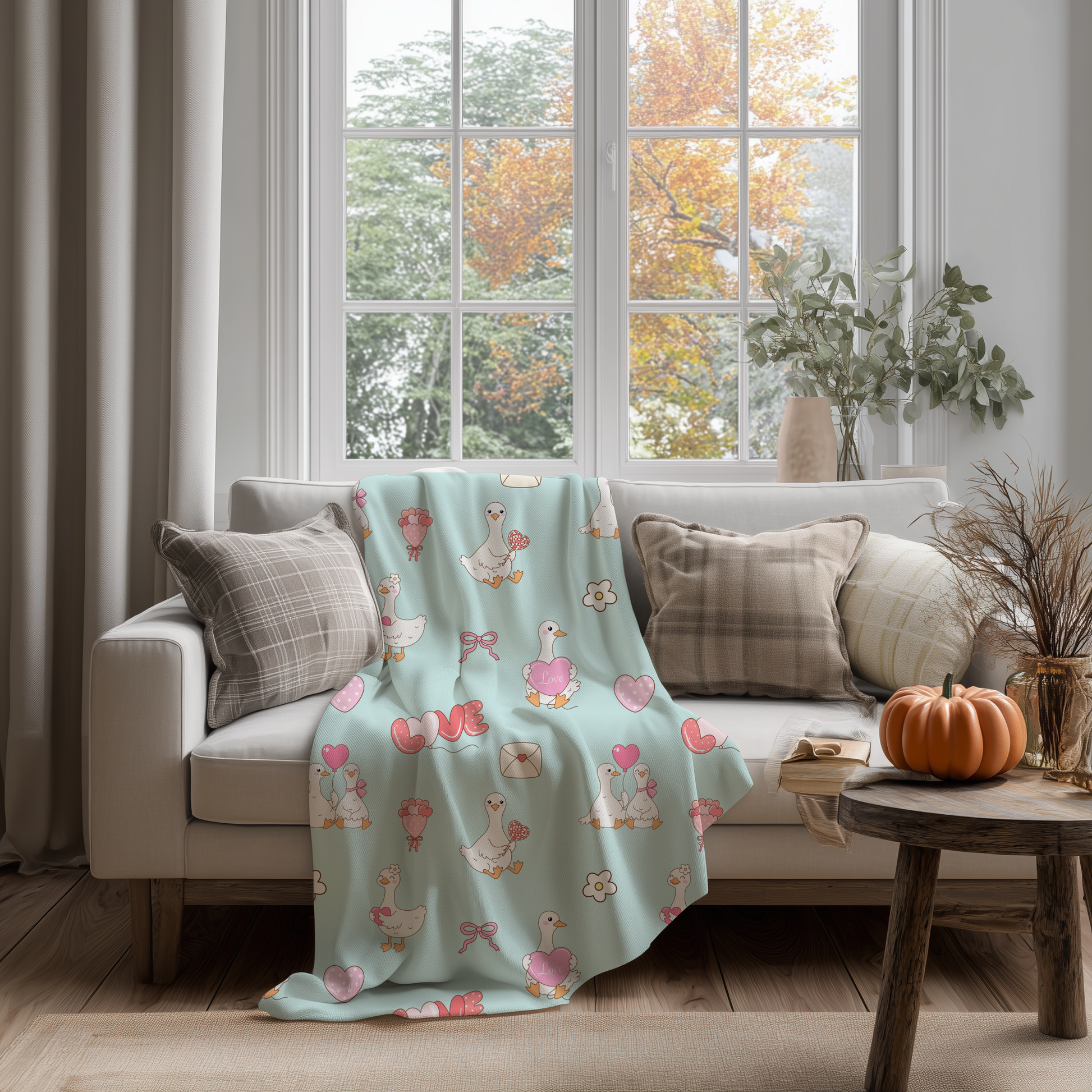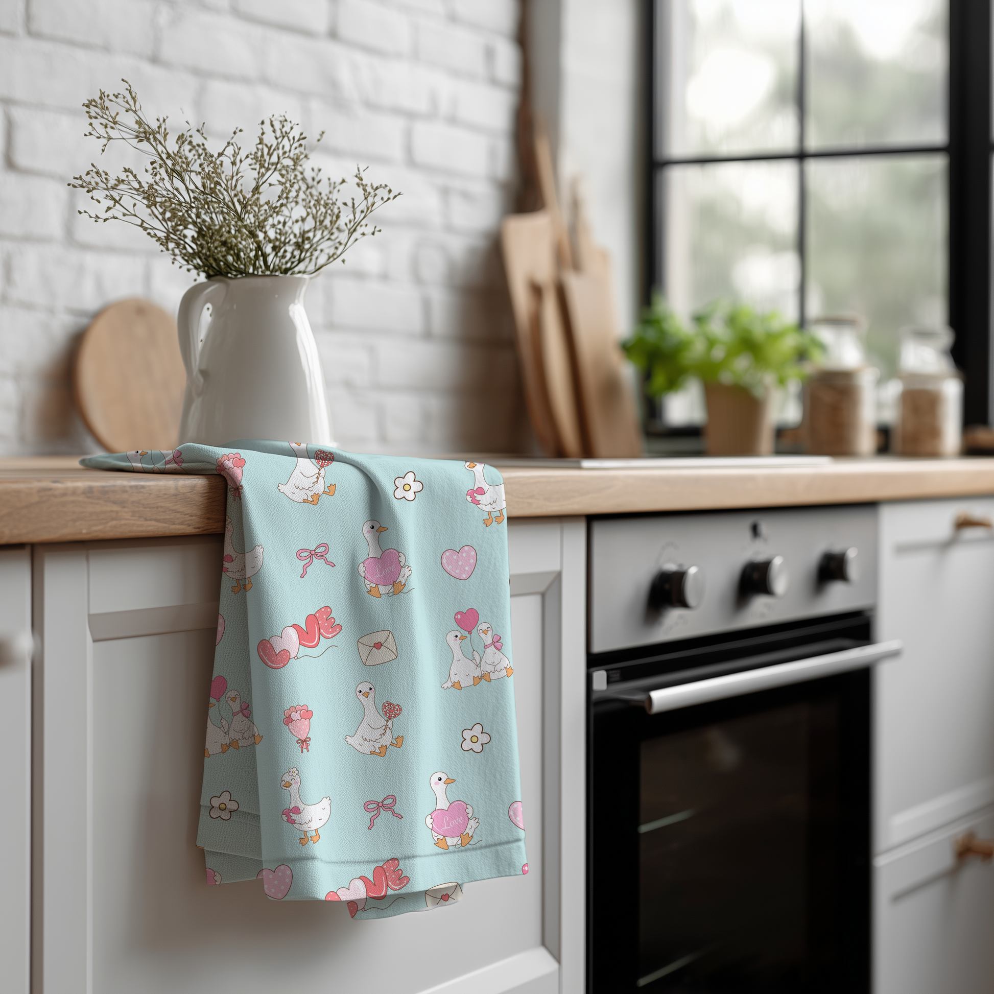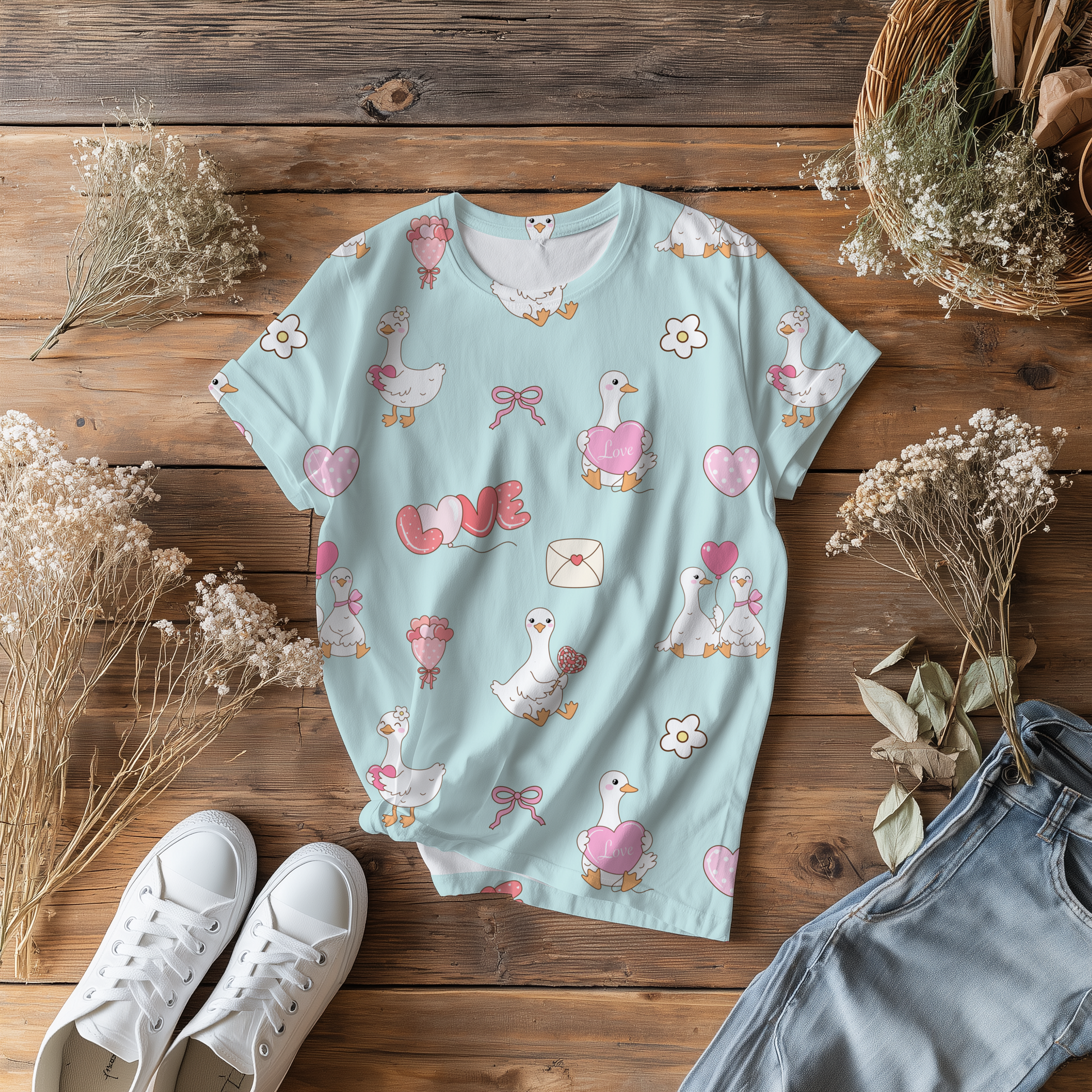 Spread the love with this hand-drawn seamless Valentine goose pattern!